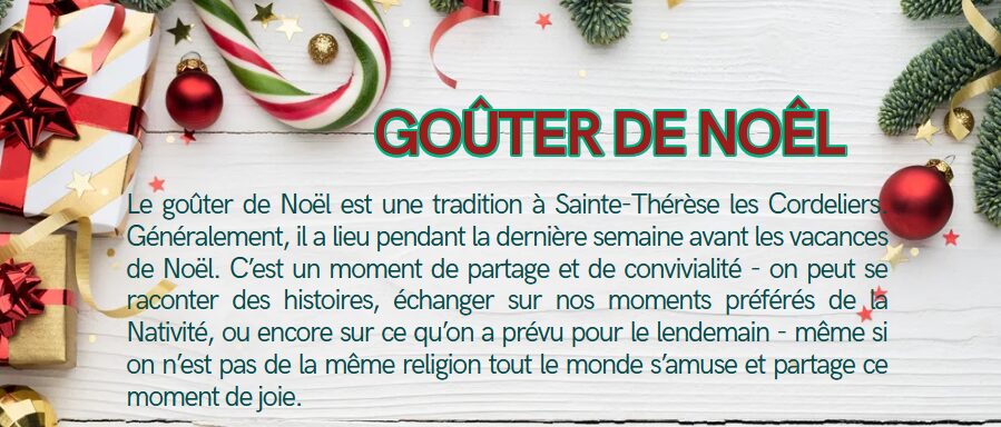 Goûter de Noël documentaliste LP2026-02-05T14:59:54+01:00samedi, 20 décembre, 2025|Catégories : Solidarité| Articles similaires « Opération brioches » de l’ADAPEI « Opération brioches » de l’ADAPEI mardi, 4 novembre, 2025 La classe de 1ère « Métiers de l’accueil » solidaire de « Clermont en rose » La classe de 1ère « Métiers de l’accueil » solidaire de « Clermont en rose » samedi, 11 octobre, 2025 Journée de partage en ASSP Journée de partage en ASSP jeudi, 2 octobre, 2025 Course solidaire Course solidaire mercredi, 8 janvier, 2025 Opération boîtes de Noël solidaires Opération boîtes de Noël solidaires samedi, 14 décembre, 2024
