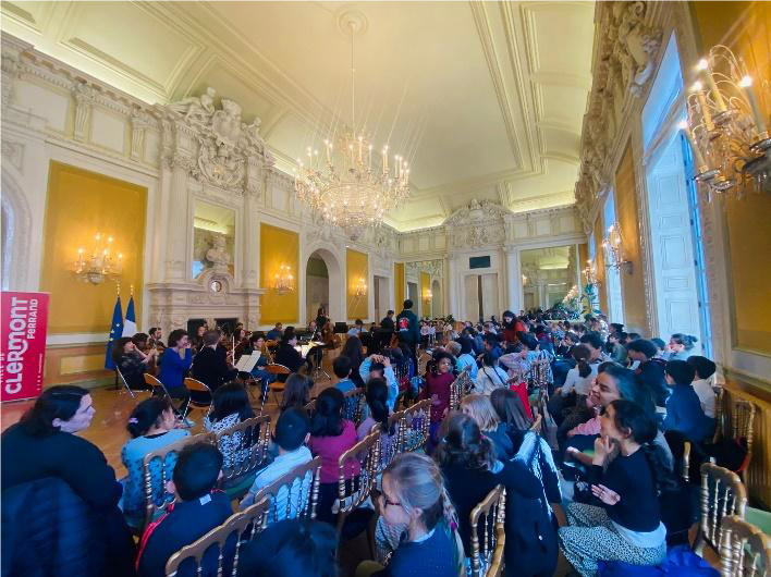 Dans le cadre du parcours culturel «musique » de la ville de Clermont, les élèves de CE1 (deux classes) ont participé au concert participatif à l’Hôtel de ville avec l’Orchestre National d’Auvergne.